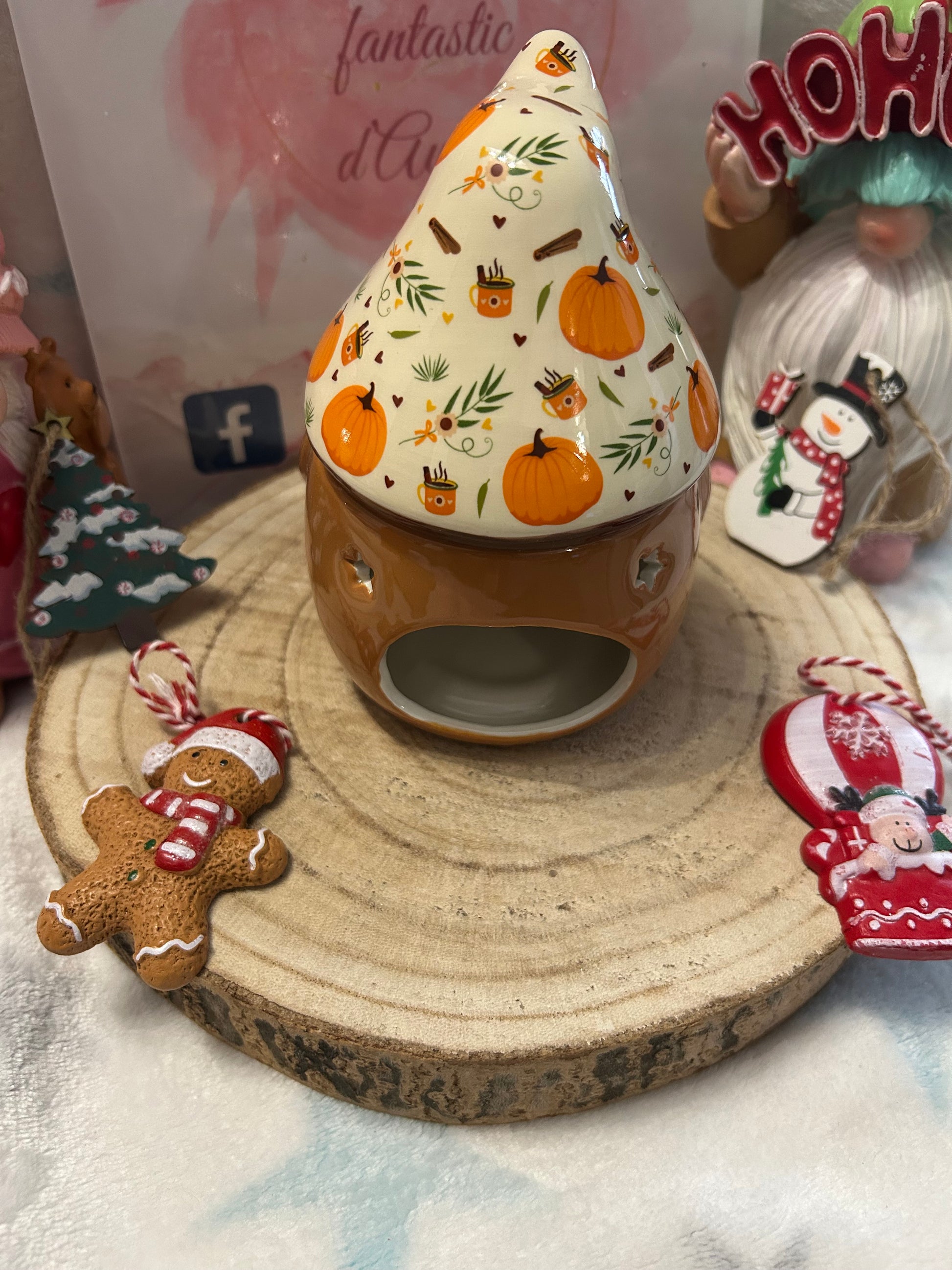 🌟 Apportez chaleur, lumière et douceur automnale à votre maison avec le brûle-parfum Gnome Citrouille.